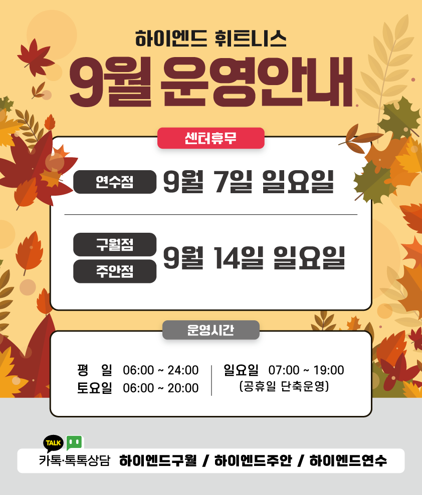 🍁 ÇÏÀÌ¿£µåÈÖÆ®´Ï½º 9¿ù ¿î¿µ ¾È³» 🍁
